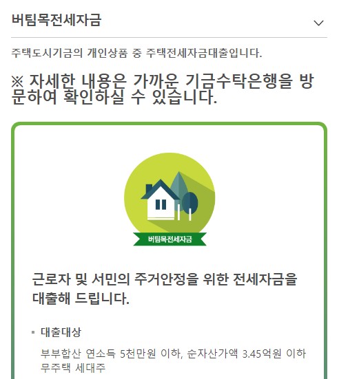 보증기관별로 취급기준이 다를 수 있으니 사전확인 필요합니다. 상기 이외 사항은 버팀목 전세 자금 대출기준을 따릅니다.